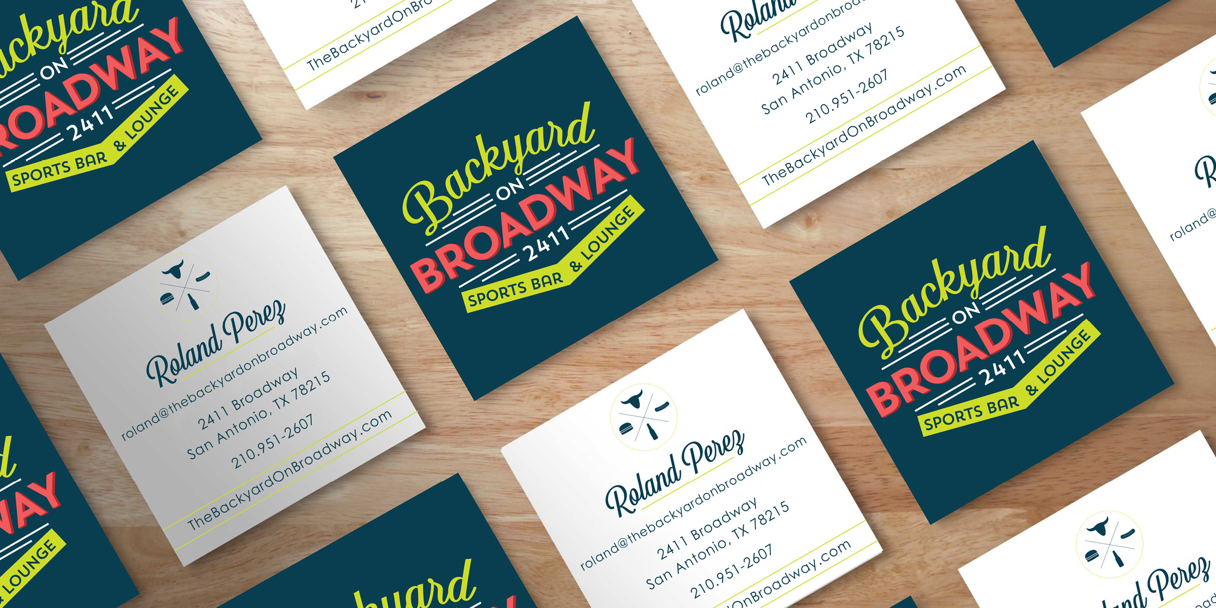 Backyard on BroadwayBranding & Collateral Design This branding is for a new Brew & BBQ restaurant that needs a logo, monument sign and business cards. The inspiration for this project is a retro and urban mix with bright colors and a sign with vintage bulbs.