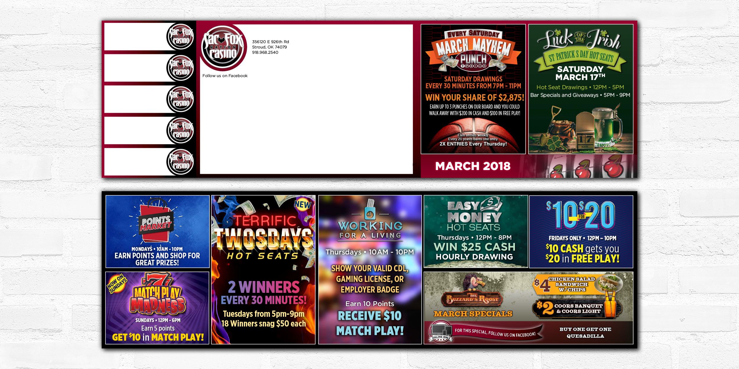These projects are for the March monthly promotions for the Black Hawk and Sac & Fox Casinos.