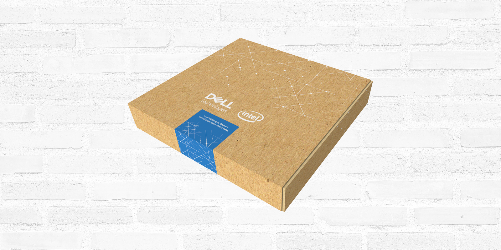 On the bottom layer, underneath the gifts, for one final touch, I added the Dell Technologies and Intel logo for added branding detail.