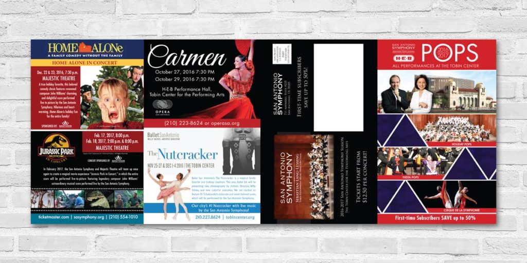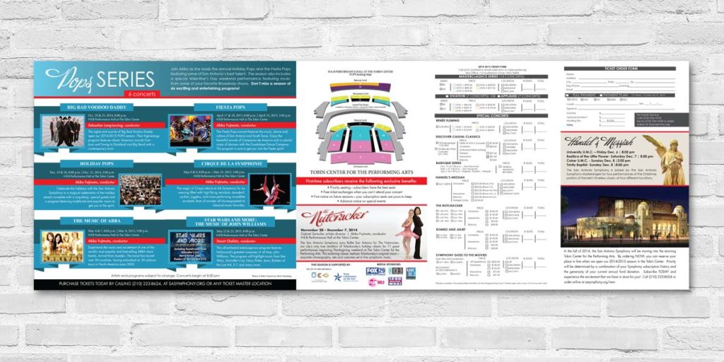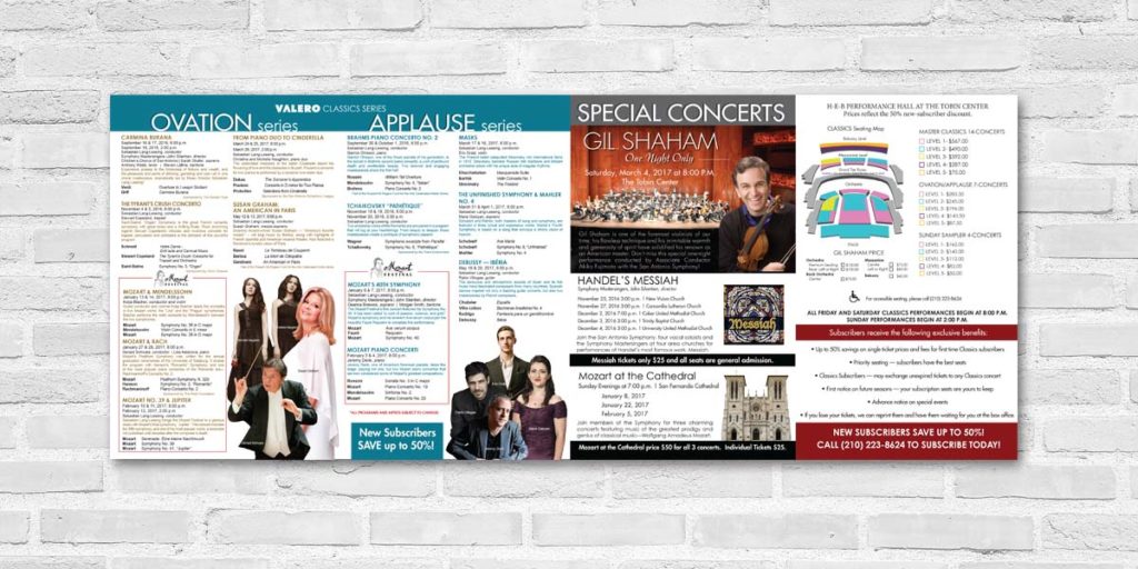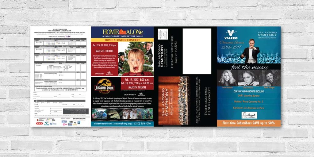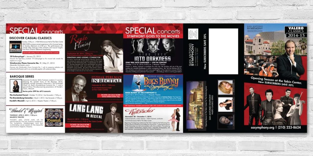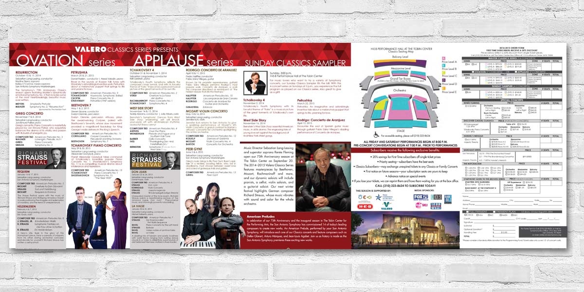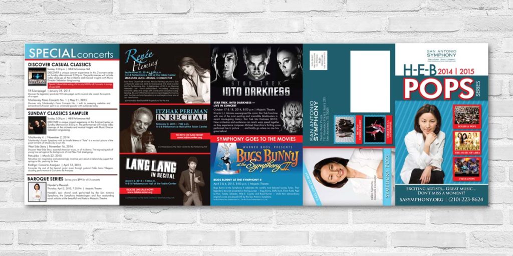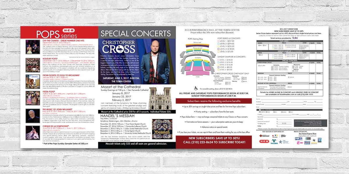 These projects were designed for The San Antonio Symphony’s season, classics and pops brochures along with a poster for one of their special concerts.