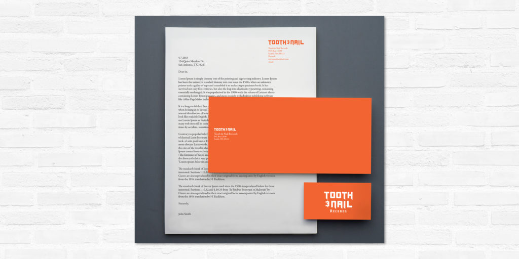 This project had an objective of redesigning the identity of Tooth & Nail Records, a record label in Seattle, WA. The original logo for the label was simply black and white with the text “Tooth & Nail Records” and had a white frame around it. The logo resembled a Polaroid photo and it did not reflect the personality of Tooth & Nail. I decided to achieve this by designing the logo to have a rock & roll look and feel to it since that is the general genre of the bands that Tooth & Nail sign.